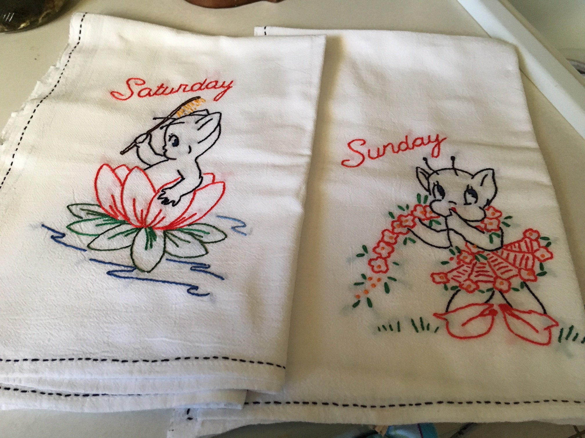 Vintage Embroidered Dish Towels Days Of The Week Complete Sun Bonnet Girls Chore 1821077607 from thumbs.worthpoint.com What kind of towel is embroidered with flowers? Embroidered backyard birds cardinal, goldfinch, bluebird, robin, oriole ivory, white, tan kitchen waffle weave terry cotton hand dish towels. Monogram, photo, text, graphic design Easy personalize · unique designs · 100% satisfaction promise Create custom decorations for any event with photos. Only 1 available and it's in 2 people's carts. Vintage kitchen towels embroidered set of 3 hand towels. Blue birds hand embroidered vintage flour sack towel uniquely embroidered flour sack towels.